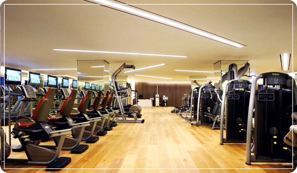 메인타워 4층 피트니스는 인체공학적 설계 및 첨단 기능을 갖춘 이태리 테크노 짐을 비롯한 90여 대의 최신 장비가