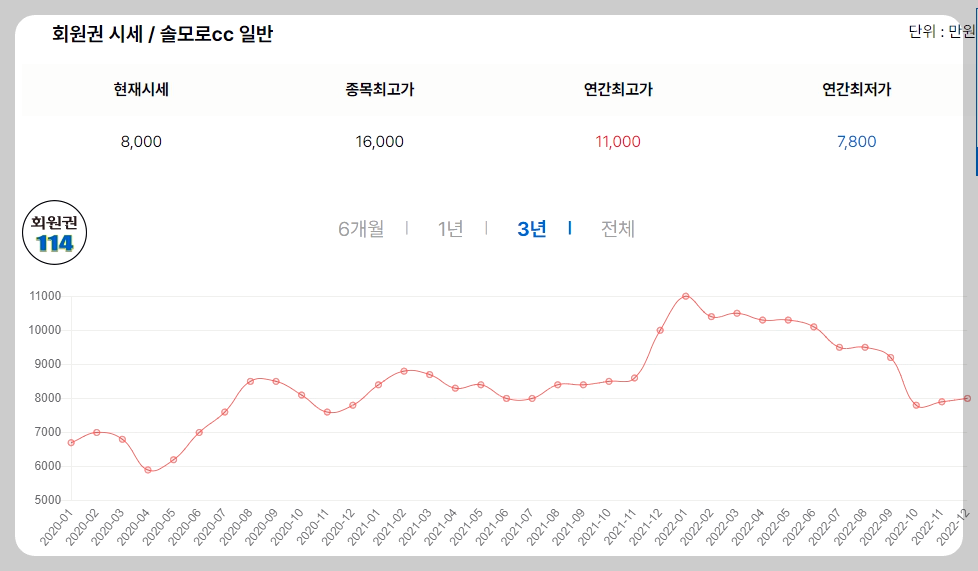 솔모로CC골프회원권매매 골프회원권시세