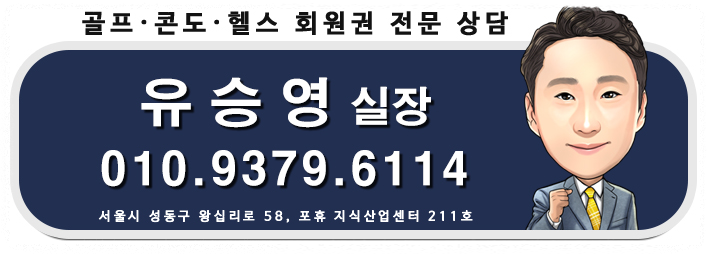 회원권114 | 유승영 | 서울특별시 성동구 왕십리로 58.211호(포휴, 지식산업센터) | 사업자 등록번호 : 211-06-95545 | TEL : 02-544-6114 | Mail : ysy785@hotmail.com | 통신판매신고번호 : 성동-01873호호 | 사이버몰의 이용약관 바로가기