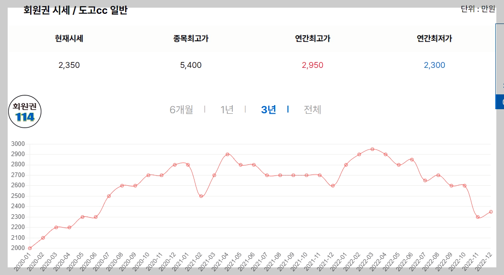 도고CC는 코로나가 전파된 2020년 초 2000만원부터 상승해서 2900~3000만원 까지 상승했다가