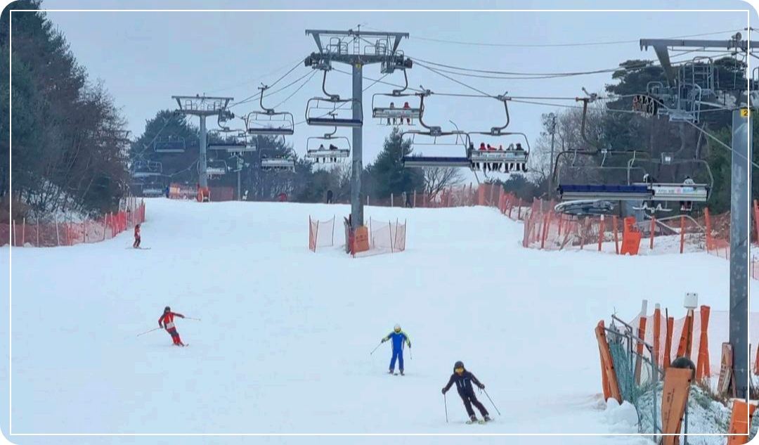 스키장 시설은 초급부터 상급까지 갖춰진 다양한 덕유산리조트의 스키슬로프가 있습니다.