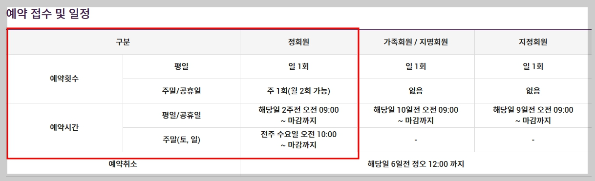예약횟수는 주중은 정회원 가족회원 지정회원 모두 부킹권한이 있지만