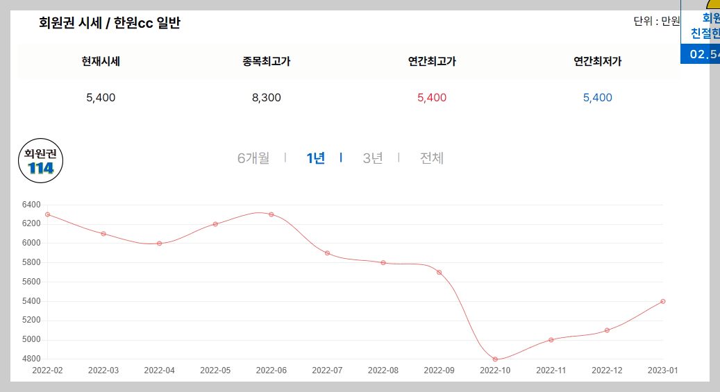 한원CC도 2022년 10월 4800만원 저점기준으로 가파르게 상승중입니다.