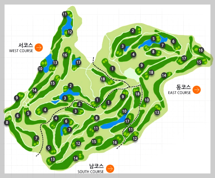 남코스와 동코스는 구 코스인 대중제코스입니다.