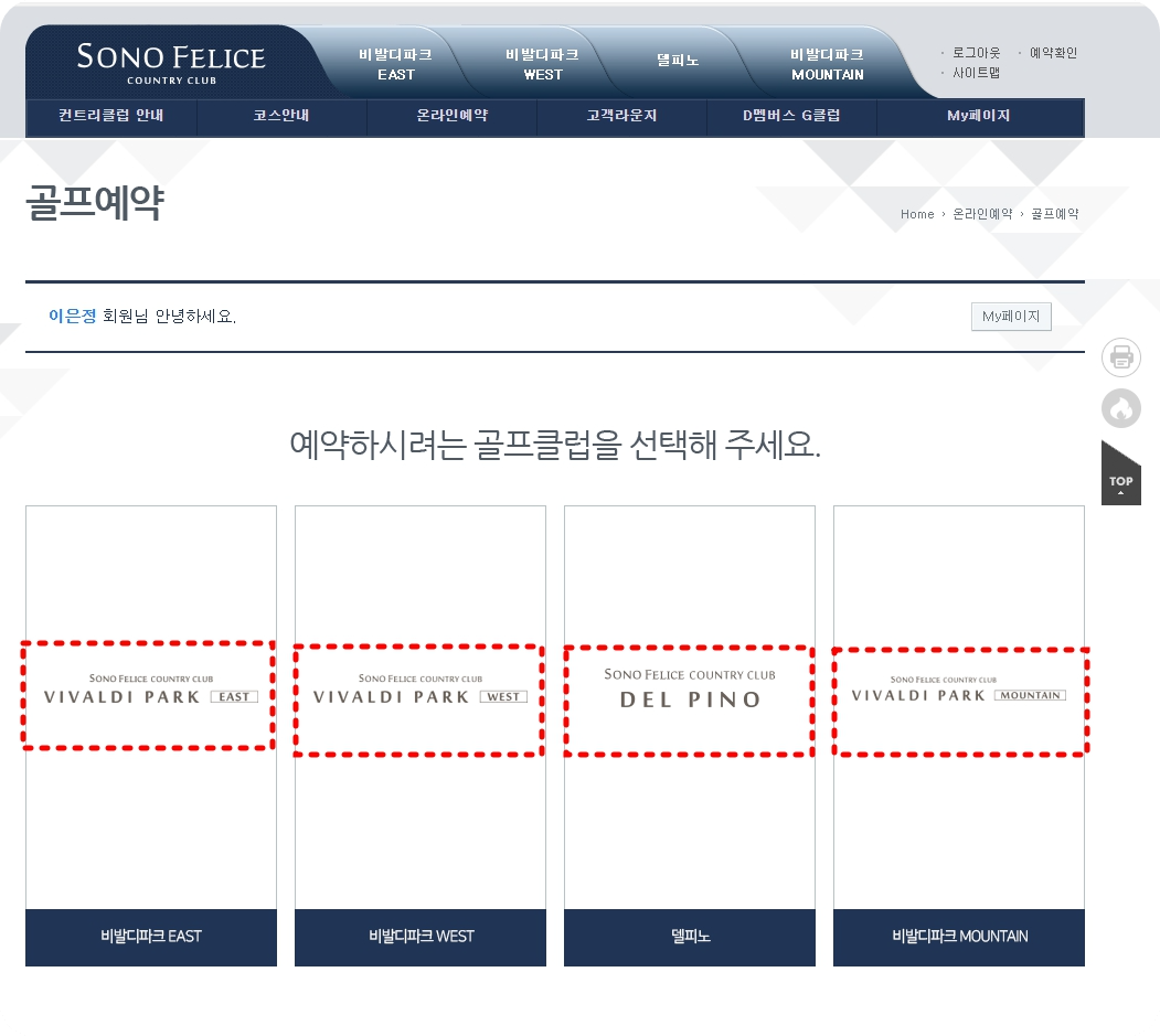 예약을 원하는 골프장을 클릭하고 들어갑니다.