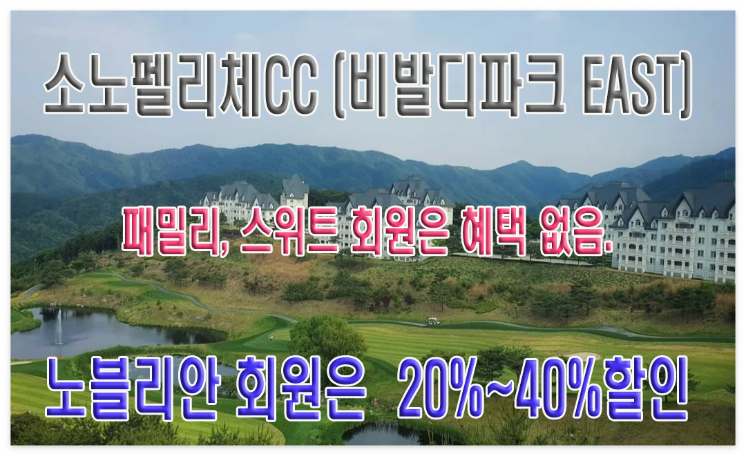 비발디파크EAST CC는 고급형 대중골프장 18홀 이며 구 , 소노팰리체CC 입니다.
