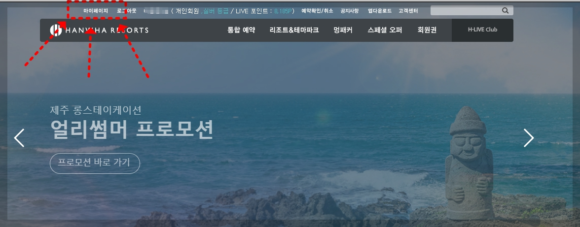 한화리조트홈페이지 방문하여
