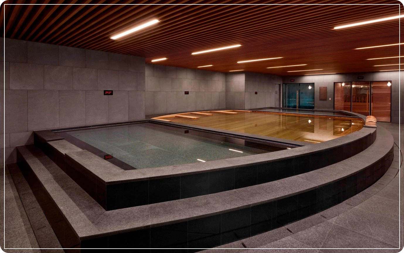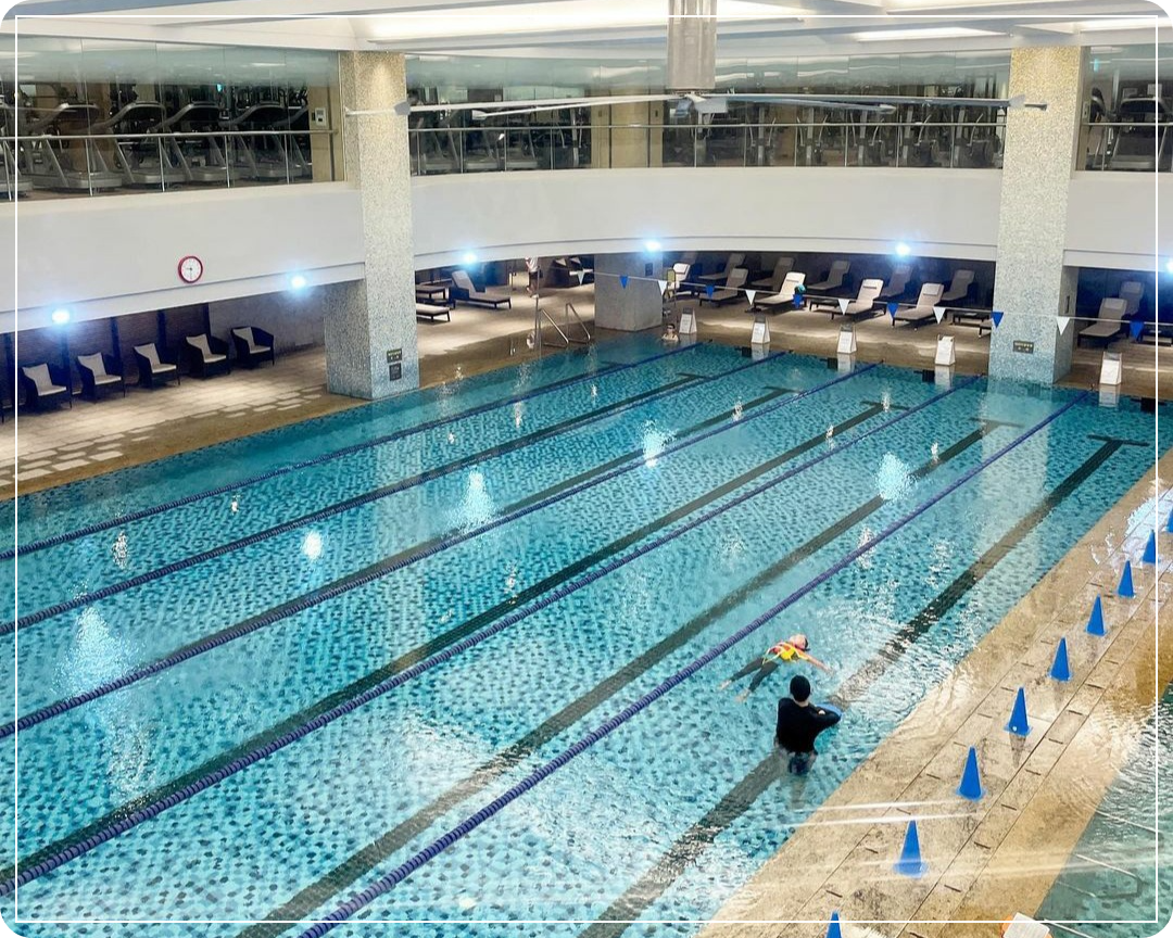 그 밖에도 25M길이의 6개의 레인의 대형실내수영장과 테라피 풀, 키즈 풀, 자쿠지를 비롯한