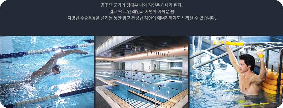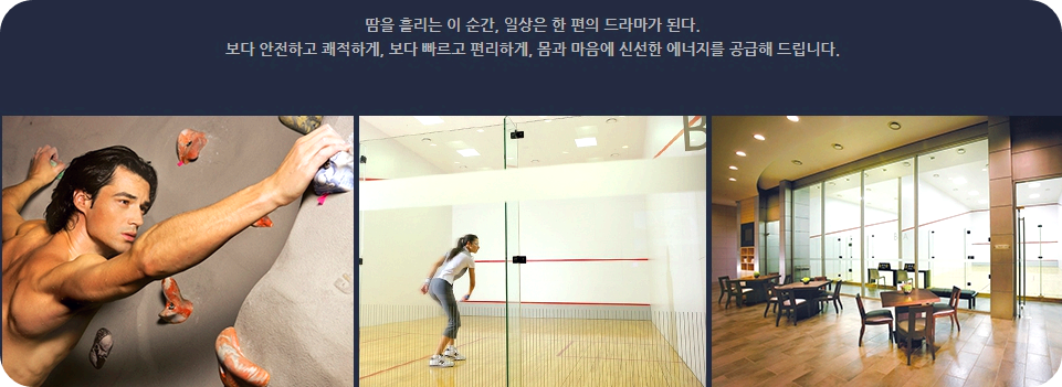 수영장, 스쿼시, 사우나, 골프연습장 모든 운동종목을 안전하고 쾌적한 환경에서 즐길 수 있습니다.